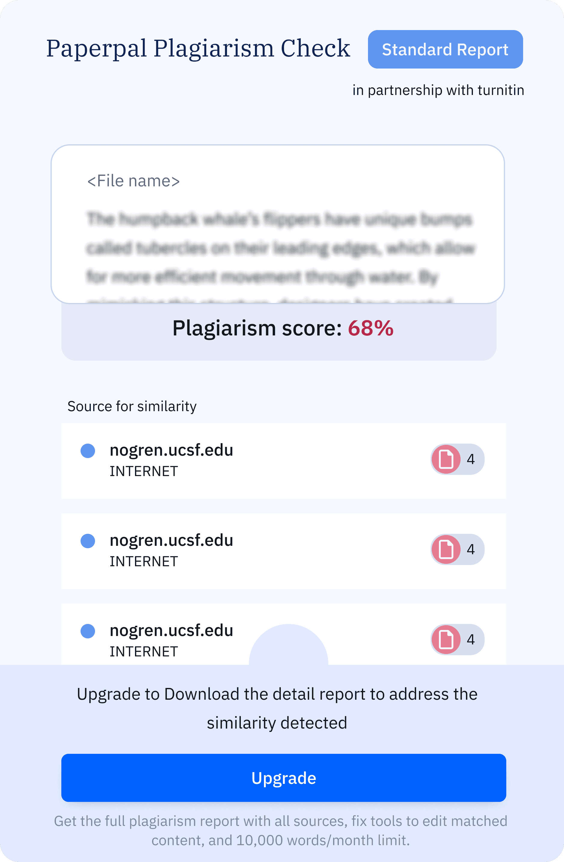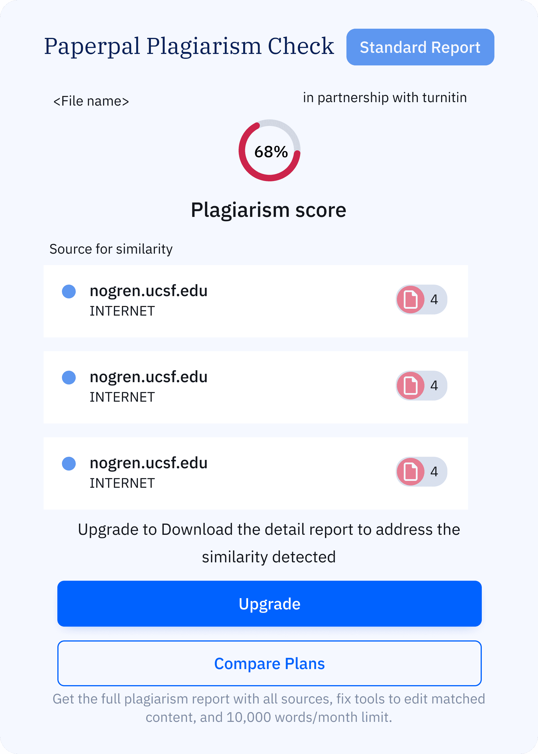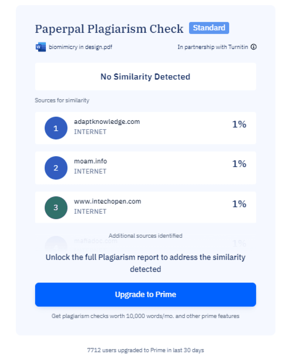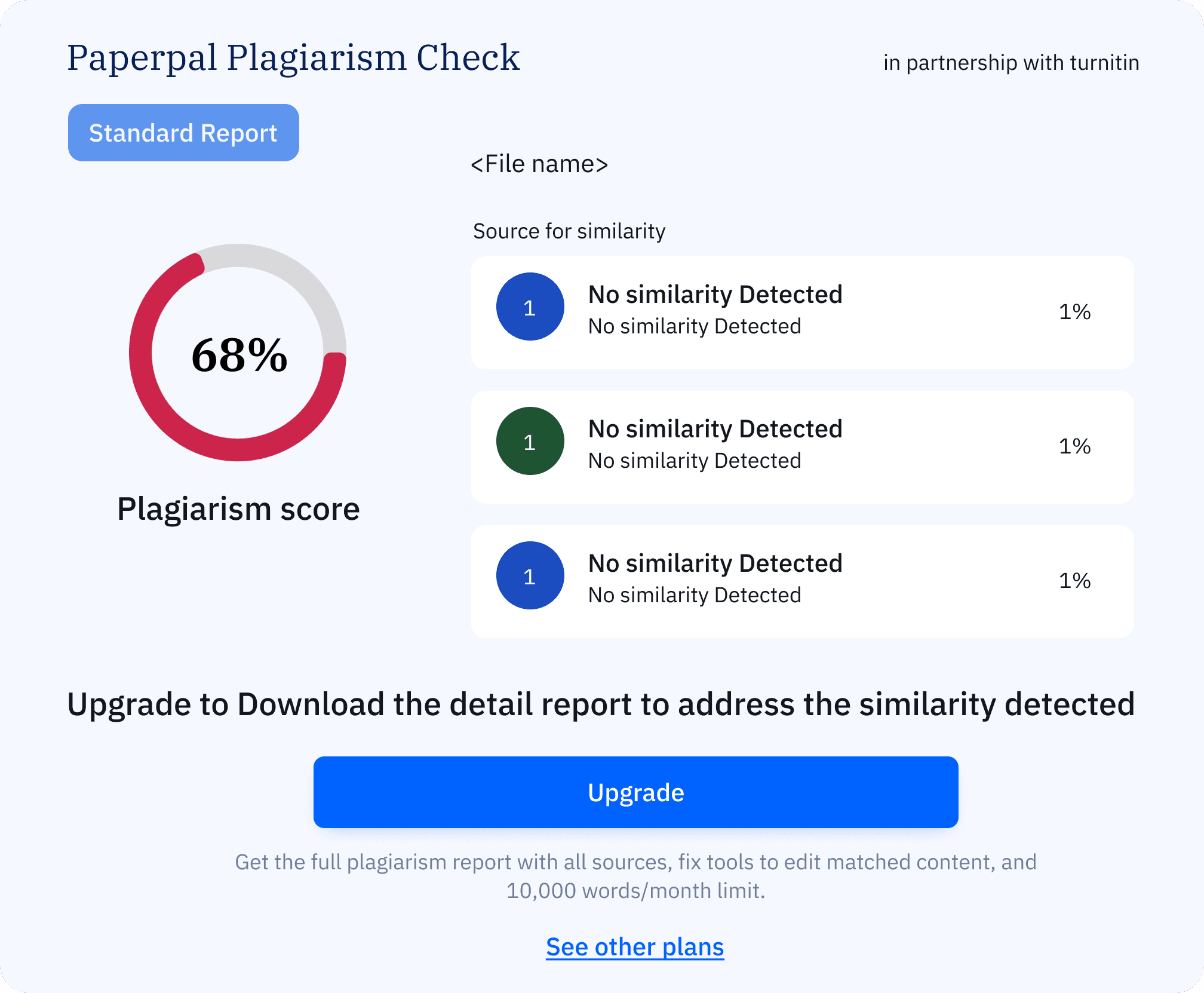 Displaying similarity as a percentage made it easier for users to understand and encouraged them to download the full report.