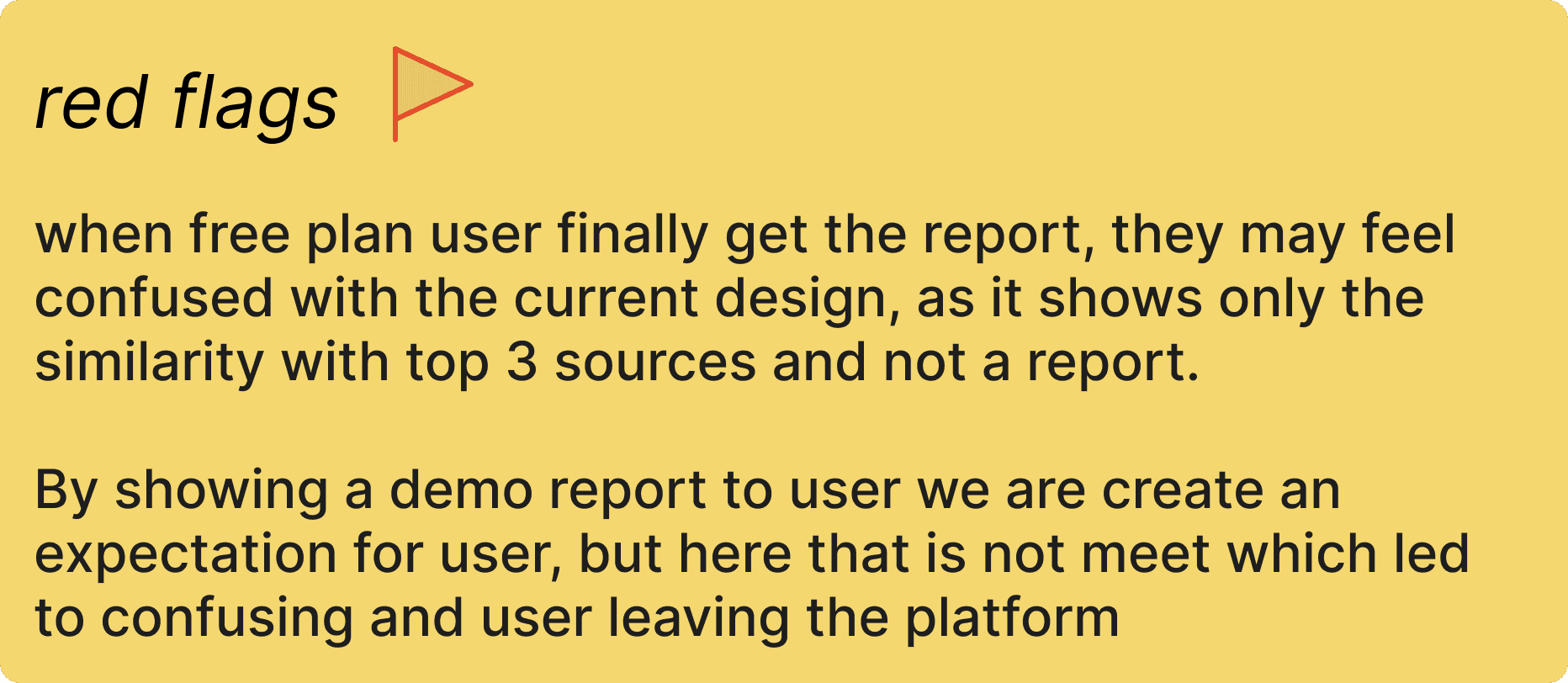 The current plagiarism check experience is losing users at critical points due to long wait times, unclear report insights, vague CTAs, and a lack of communicated benefits for the user. The redesign was necessary to improve communication and provide clear next steps.