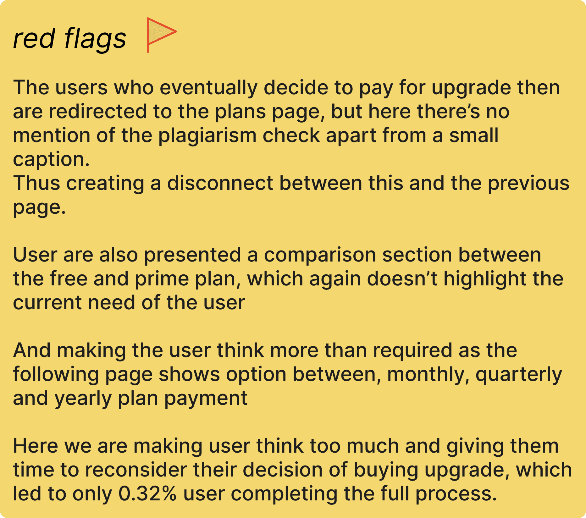 The plagiarism check feature struggles with user drop-offs at key stages: during scanning, upon receiving the report, and at payment, resulting in only 0.32% upgrading to Prime. The goal was to redesign the experience to simplify the process, engage users, and boost conversions.